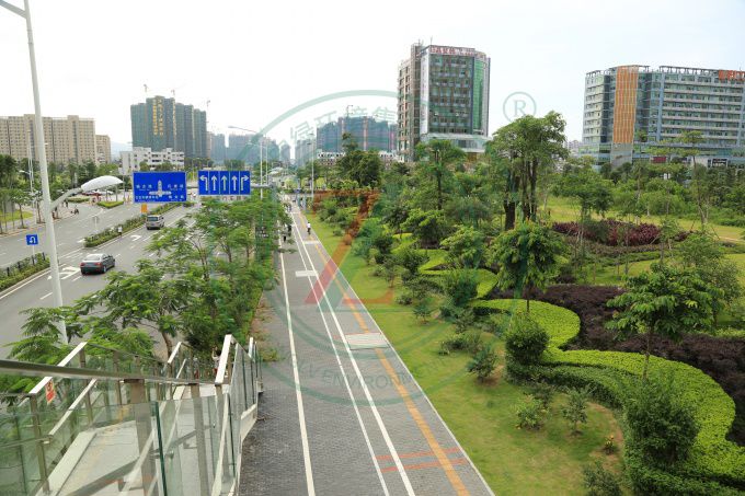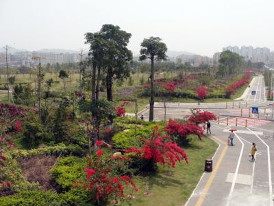 亞洲最大的火車站,景觀規(guī)模宏大,綠化具備中國(guó)特質(zhì),品種多樣,層次豐富,色彩熱烈。中國(guó)版圖分為東、西兩部:東、西廣場(chǎng)分別代表中國(guó)東部和西部,以此表示深圳北站既是深圳的火車站,也是中國(guó)的火車站,同時(shí)表達(dá)具有鮮明“移民城市”特征的深圳,將以更開放的姿態(tài)歡迎新加入深圳建設(shè)的朋友。