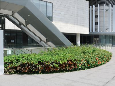 綠化面積約20000m2,包含景觀木平臺、景觀鋼構平臺、無邊際大花池、園建工程、給水工程、綠化工程、電氣工程等。