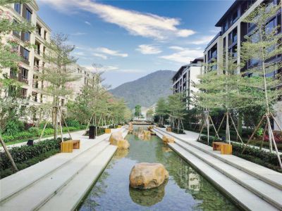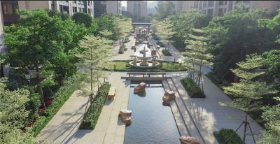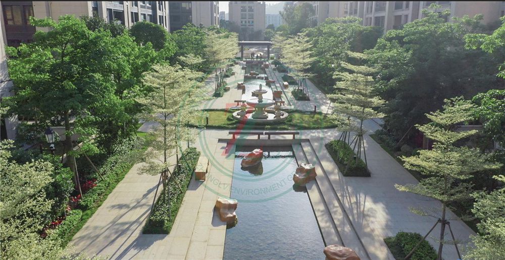 景觀面積約4.4萬m2,包含凱旋路入口景觀提升及隧道亮化工程,涵蓋綠化工程、園建工程、景觀給排水及電氣安裝工程、生態(tài)水環(huán)境工程、室外綜合管網(wǎng)工程等。具體包括綠化栽植、綠化遷移及養(yǎng)護(hù)、排水溝安裝及拆除、人行道鋪裝、消防車道和行車道鋪裝、陽光草坪擋墻、庭院分戶圍墻、北入口LOGO墻、主軸水面、鏡面水景、親水平臺、消防鐵藝大門、濱水主軸特色水景、地下車庫一入口雨棚、兒童活動區(qū)鋪裝、棧橋鋪裝、休閑廣場鋪裝、架空層、主軸連廊、人工湖等。