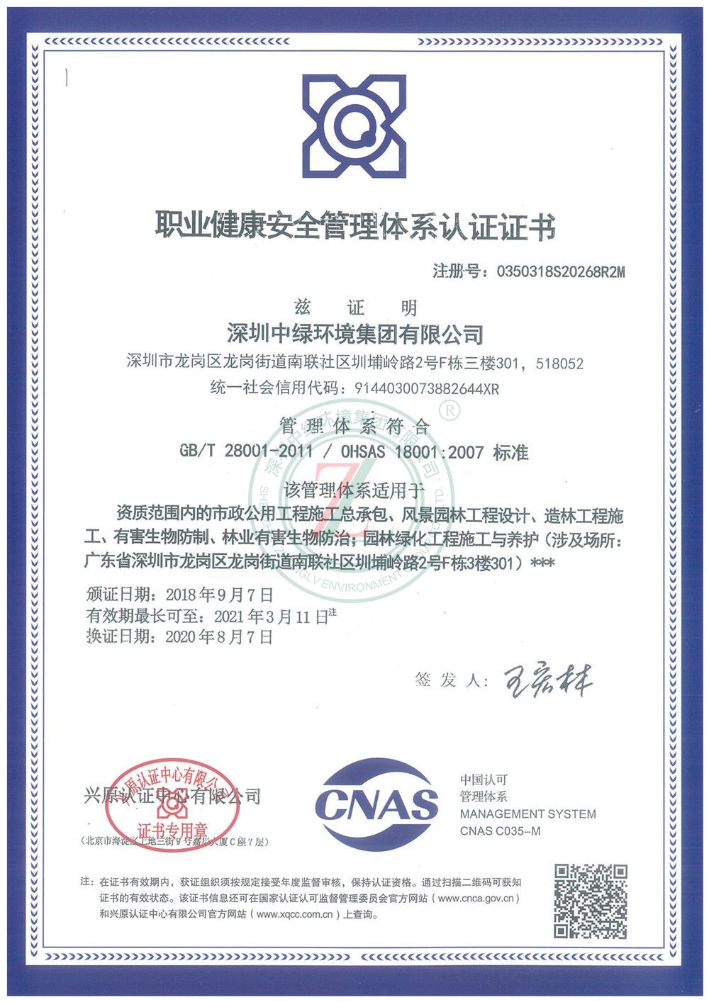 環境管理體系認證證書