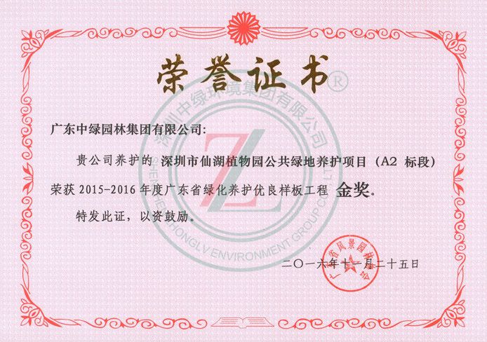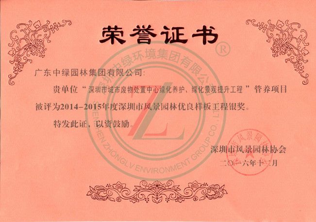 深圳中綠環(huán)境集團(tuán)有限公司 - 走進(jìn)中綠 - 項目榮譽(yù)