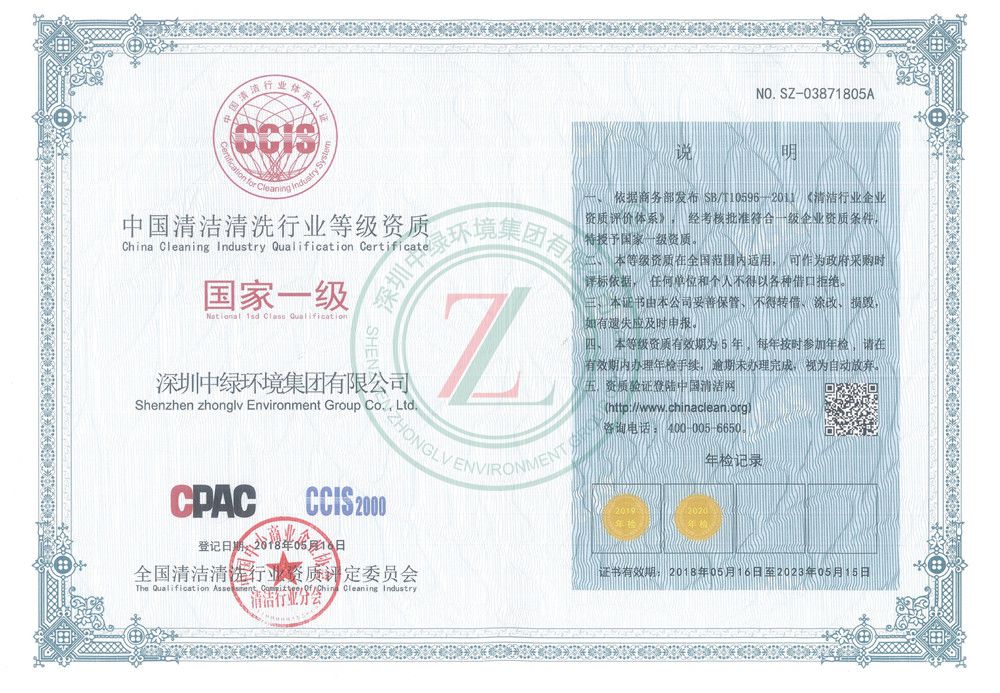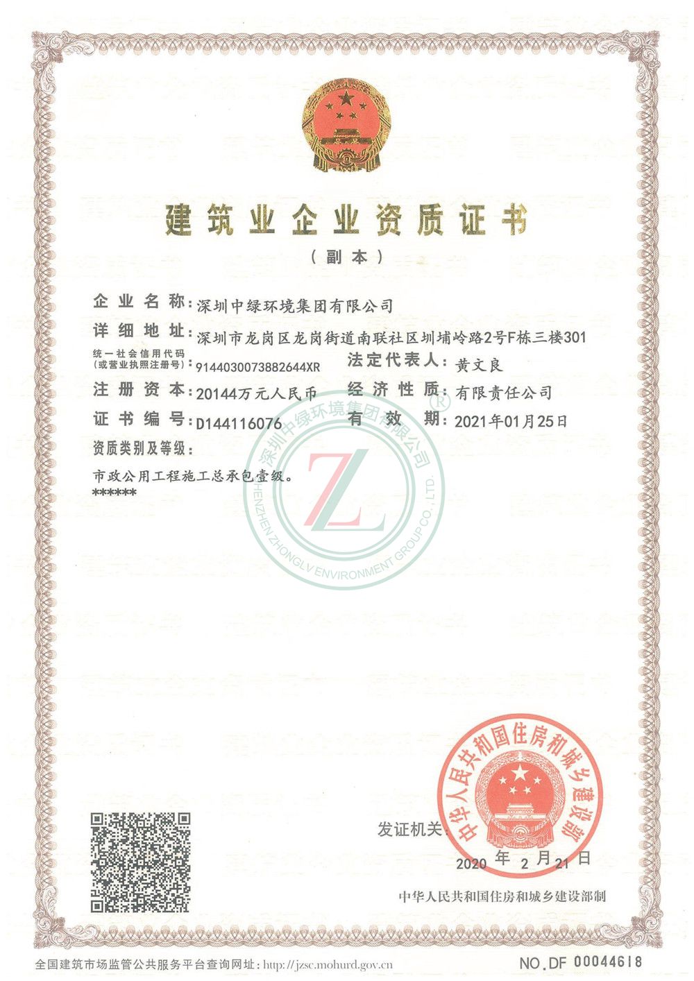 深圳中綠環境集團有限公司 - 走進中綠 - 資質證書